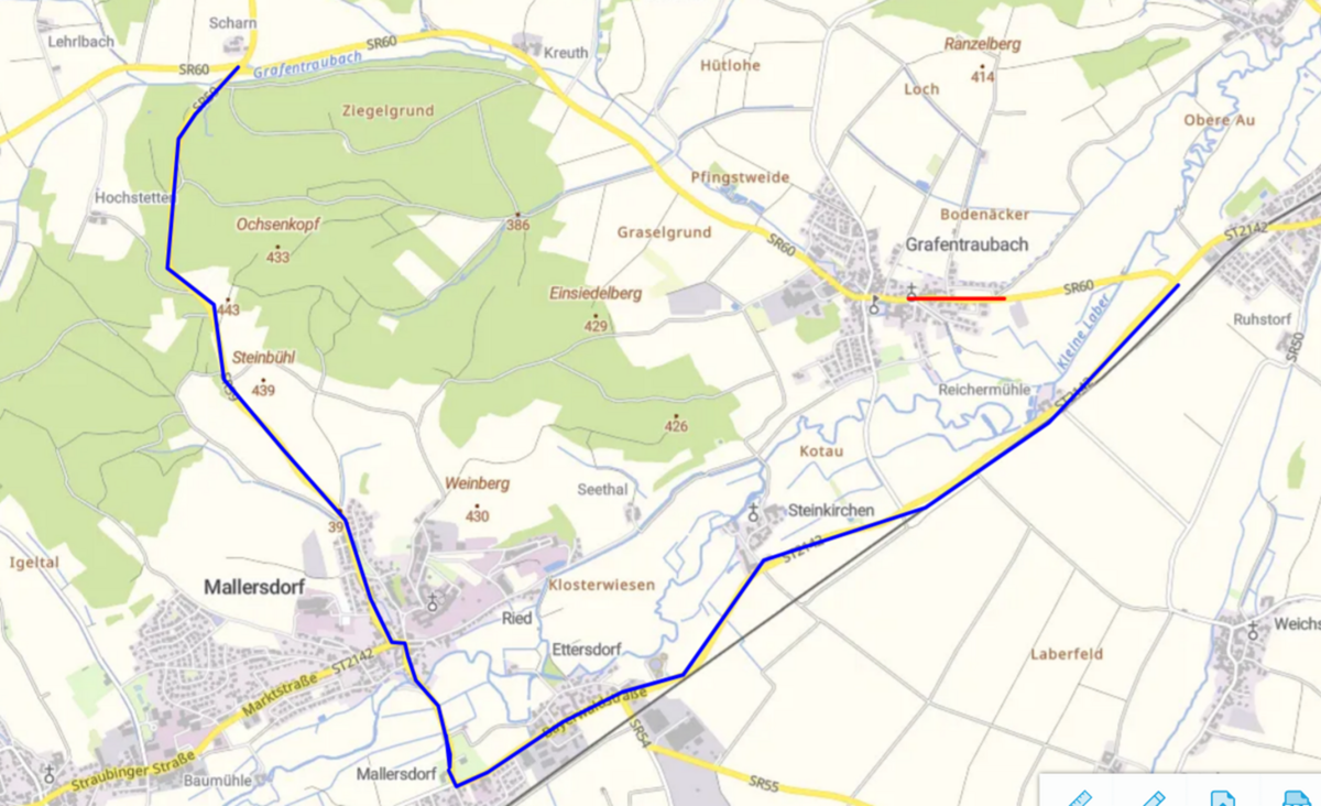 Wegen Kanalbauarbeiten wird die Kreisstraße SR 60, vom Ortsanfang Grafentraubach bis zur Haus Nr. 123, ab Montag, 02.03.2026 bis voraussichtlich Donnerstag, 30.04.2026, für den gesamten Verkehr gesperrt.